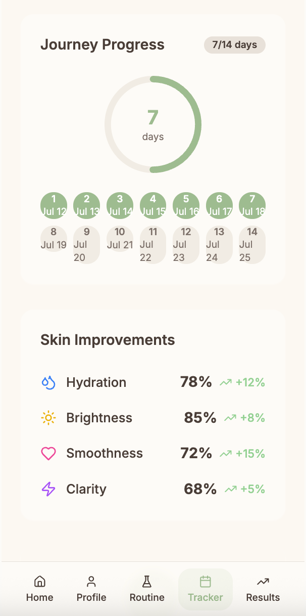 GlowPath helps you track your routine — based on your skin’s real cycle, spot what’s helping or harming, and know when to start, stop, or switch products.