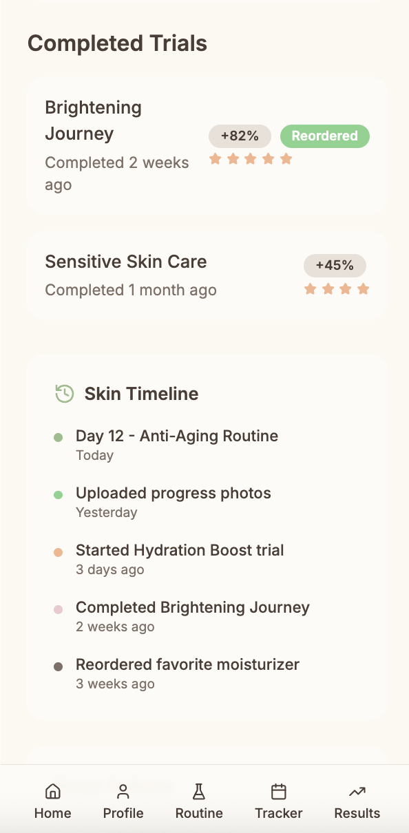 Start/stop products with clear timestamps. Know when that new serum actually made a difference.